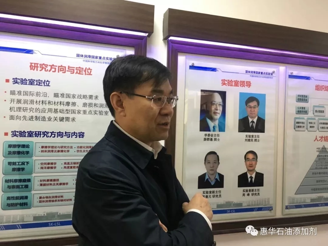 On May 8, 2018, according to the activity arrangement of 'Lanzhou Science and Technology Week' in Zibo City, Yu Xiudong, Director of the Municipal Science and Technology Bureau, and Wang Hongxin, Director of the Zichuan District Science and Technology Bureau, led a team to visit the State Key Laboratory of Solid Lubrication of Lanzhou Institute of Chemical Physics, Chinese Academy of Sciences. Academician Liu Weimin personally introduced and displayed the original aerospace lubrication materials of Shenzhou VII spacecraft.